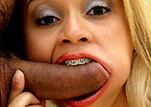 This voluptuous ebony goddess is one nasty chick. She has these huge beautiful tits and a fat ass. She really loves to suck cock and any cock will do. Africa called us up one day begging to be fucked so we knew she was desperate for a fuck. We went over to her place and she was already getting herself warmed up! She had the best time ever because we treated her exactly how she likes it, using her like a Human Toilet Bowl! |