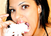Nashita is one hell of a sexy bitch! Surprisingly, she also gives one hell of a sloppy blowjob! You have to check her out as she gags our boy Santo's cock and throws up on it without even stopping the blowjob! Then he fucks the shit of her raw using her puke as lube for her pussy! This scene is gruesomely Incredible! |